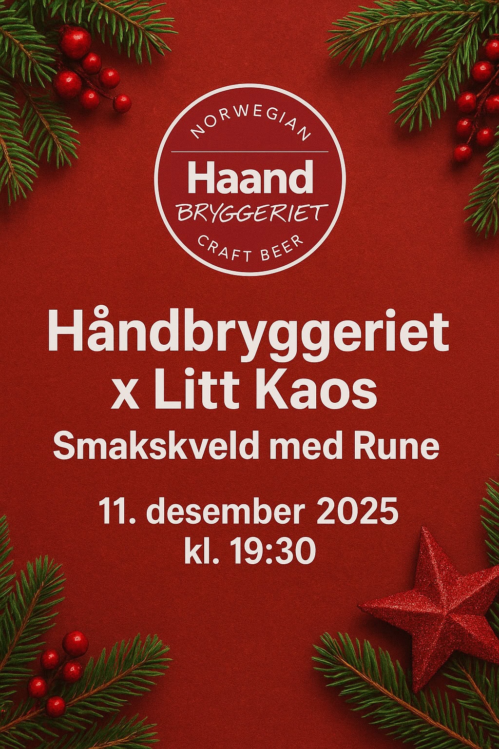 Denne kvelden smelter Litt Kaos og Håndbryggeriet sammen til én stor førjulsfeiring av smak! Våre dyktige kokker får besøk av selveste Rune fra Håndbryggeriet, og sammen inviterer vi til en uformell, lærerik og ikke minst smakfull kveld.