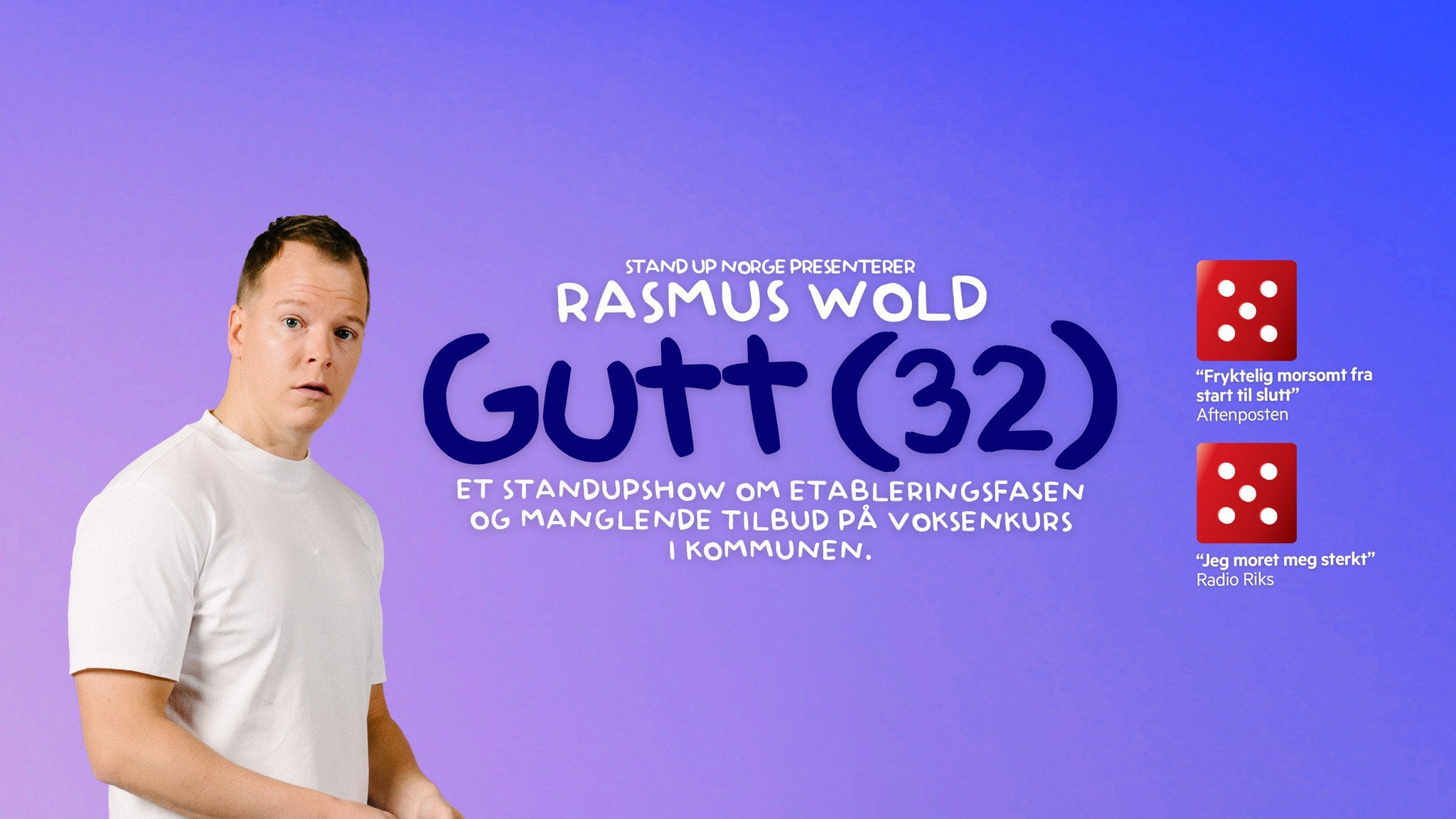 «Gutt (32)» er oppfølgeren til debutshowet «Sportsidiot», som gikk sin seiersgang på Latter og etablerte Rasmus som en av landets fremste standupkomikere. Denne gangen spinner han rundt det vanskelige med å bli voksen og alt man er nødt til å forholde seg til i kraft av å bli eldre. Med Rasmus sitt unike blikk og evne til å finne vitser over alt, er vi sikre på at dette blir et hysterisk morsomt show som de aller fleste vil kunne kjenne seg igjen i. Enten du er 32 år, har vært 32 år eller skal bli 32 år.